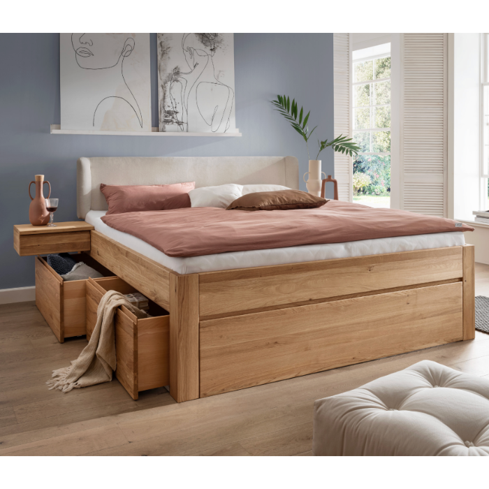 De Oak-wild bedframes van Hasena zijn gemaakt van massief wildeikenhout. De bedframes zijn 3,5 cm dik en verkrijgbaar in verschillende hoogtes, maten en kleuren. Ook zijn er diverse mogelijkheden met betrekking tot de poten en het hoofdbord.